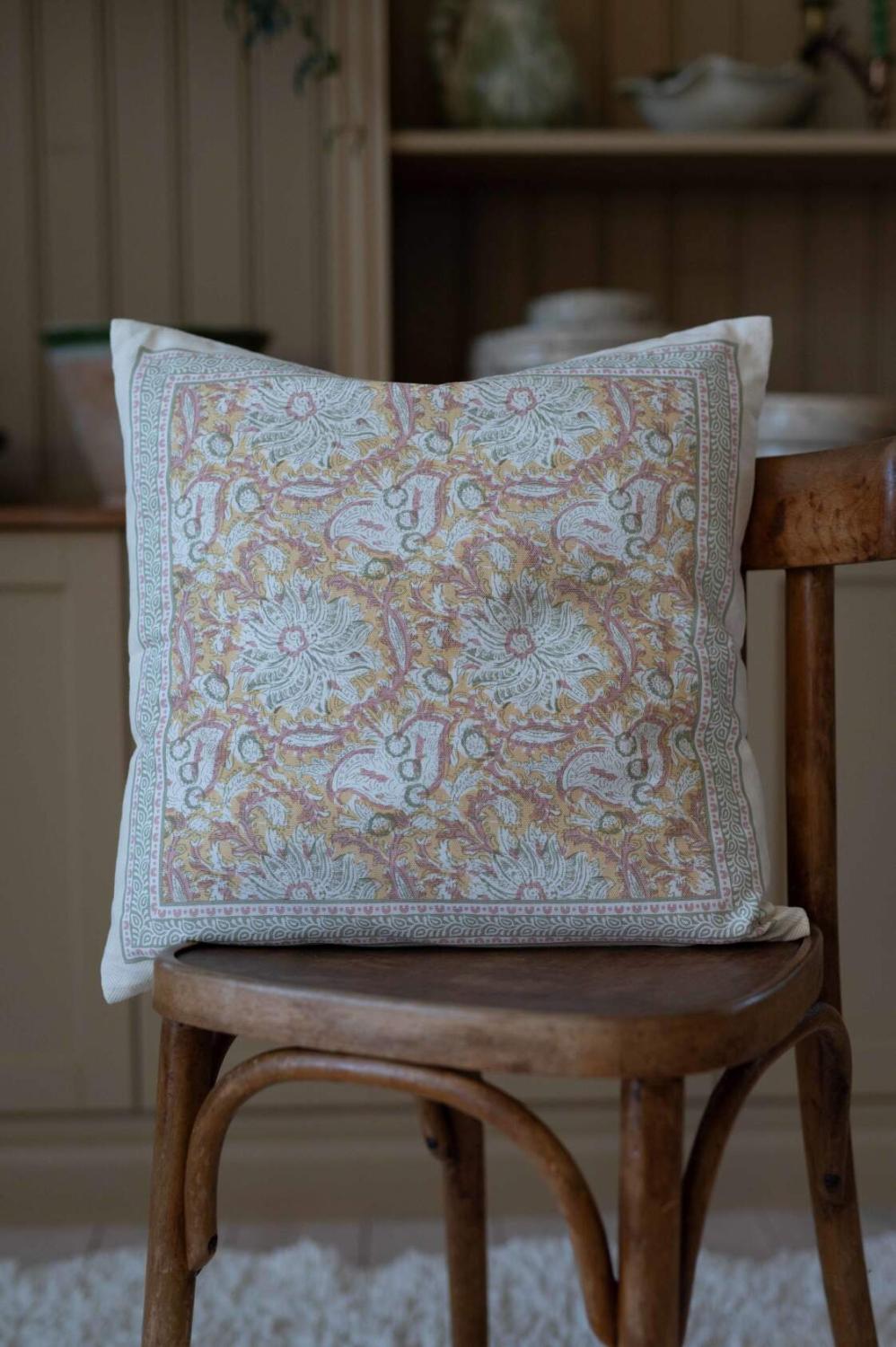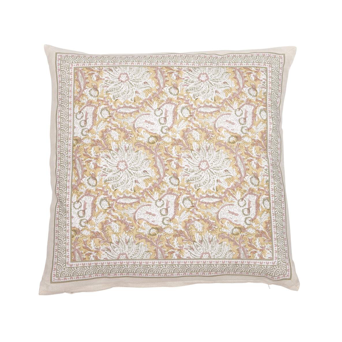 Kuddfodral DANTE, blommig i gult med bård runt om