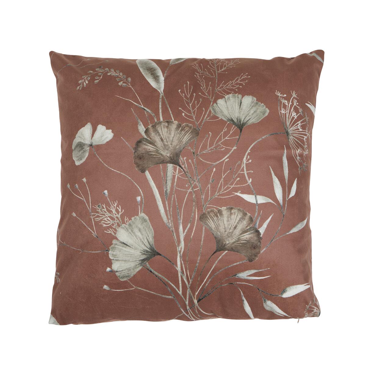 Kuddfodral GISELA med Ginkoblad i beige och brunt, bottenfärg rost