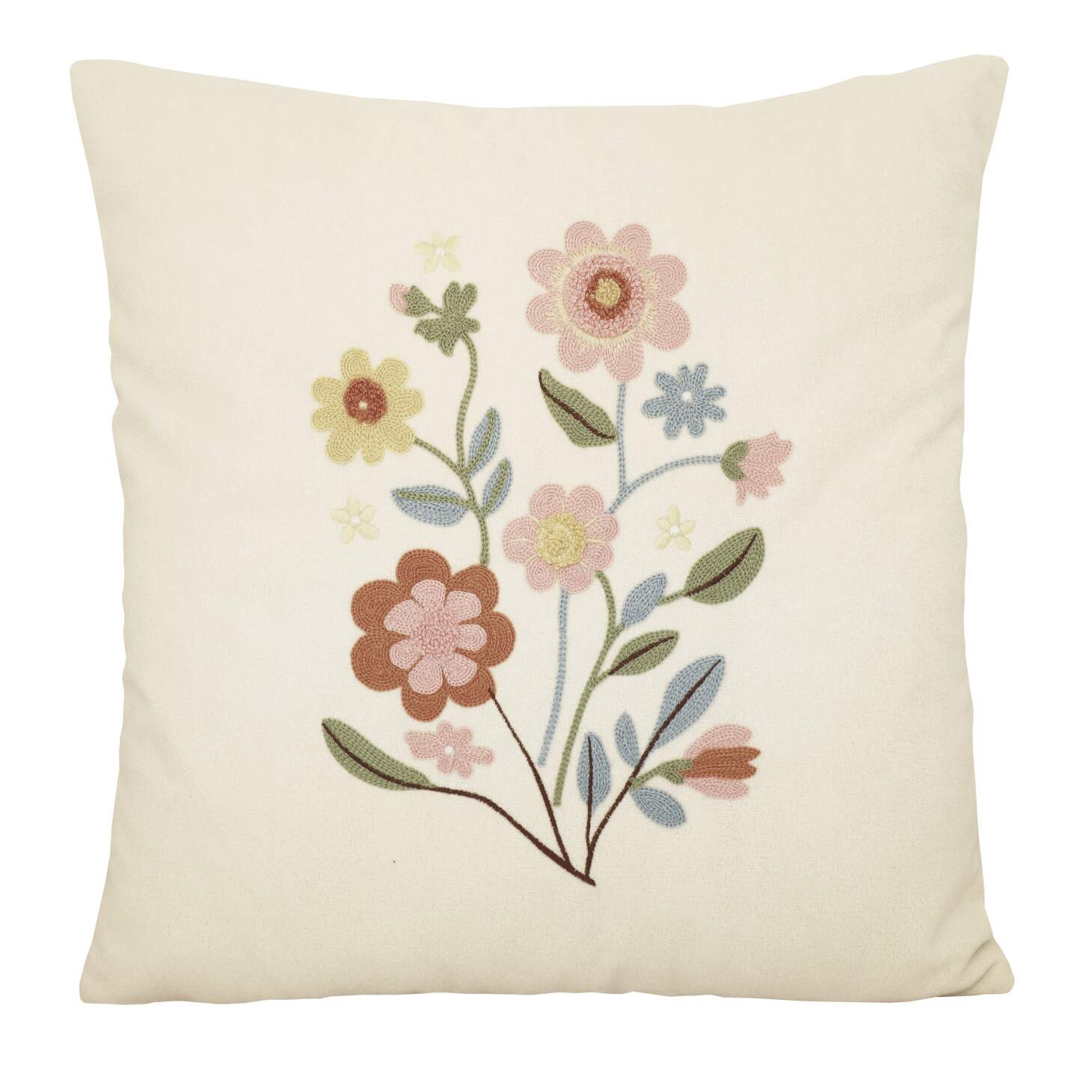 Stl. 45x45 cm, Mjukt och skönt kuddfodral GRETA i kortklippt "teddy"-kvalité med broderade blommor. Enfärgad baksida, dold dragkedja nedtill.