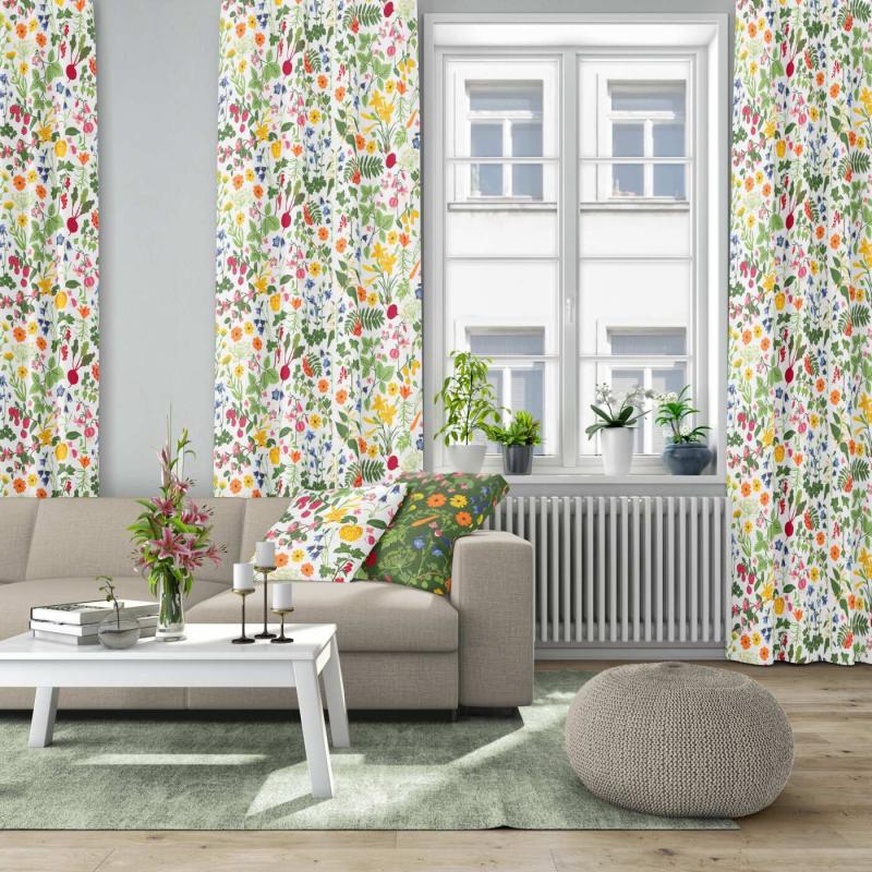 Stl. 47x47cm. Kuddfodral HEDEMORA, med blommor, blad, bär och grönsaker. Försluts med dragkedja. Kuddfodralet är liksidigt. Design Edholm Ullenius.