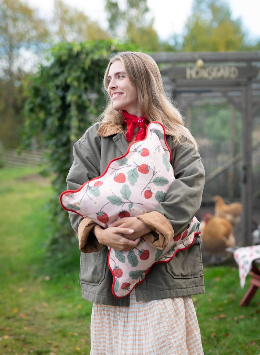 Mönstret Jordgubbe finns i flera produkter följ länken JORDGUBBE så finner du fler.
