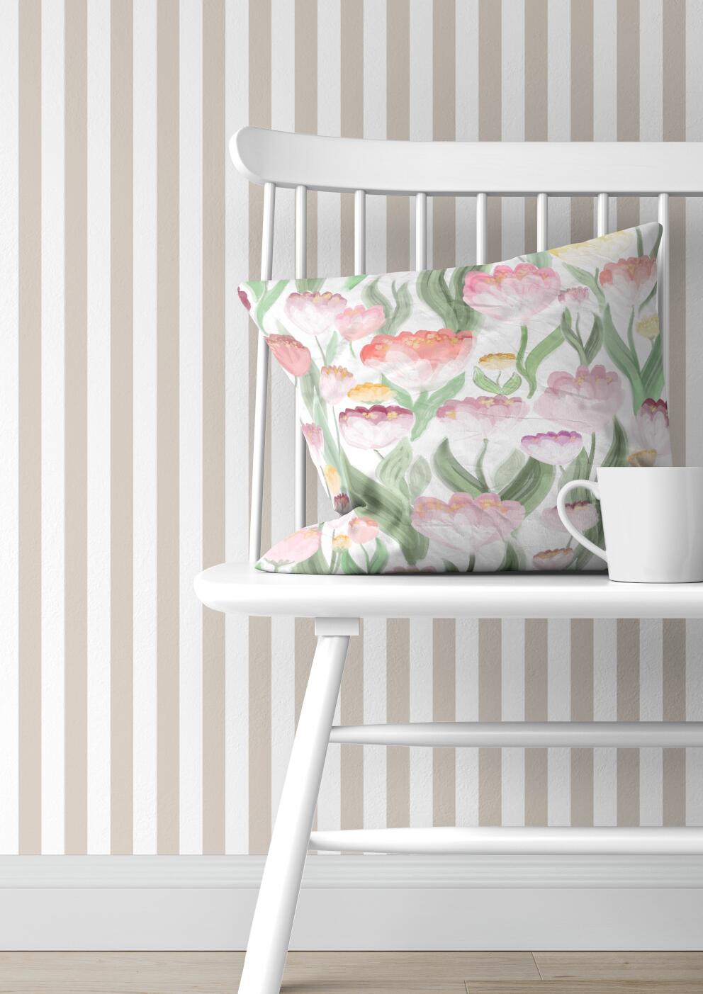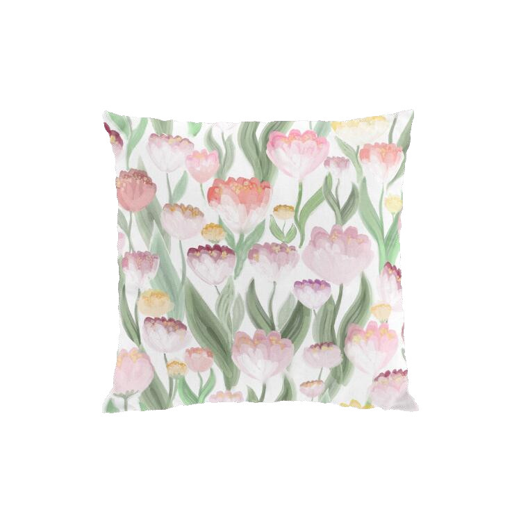 Kuddfodral LJUVLIGT med rosa tulpaner på offwhite bottenfärg