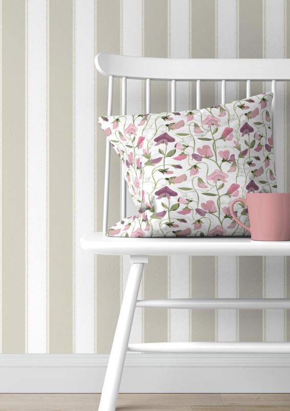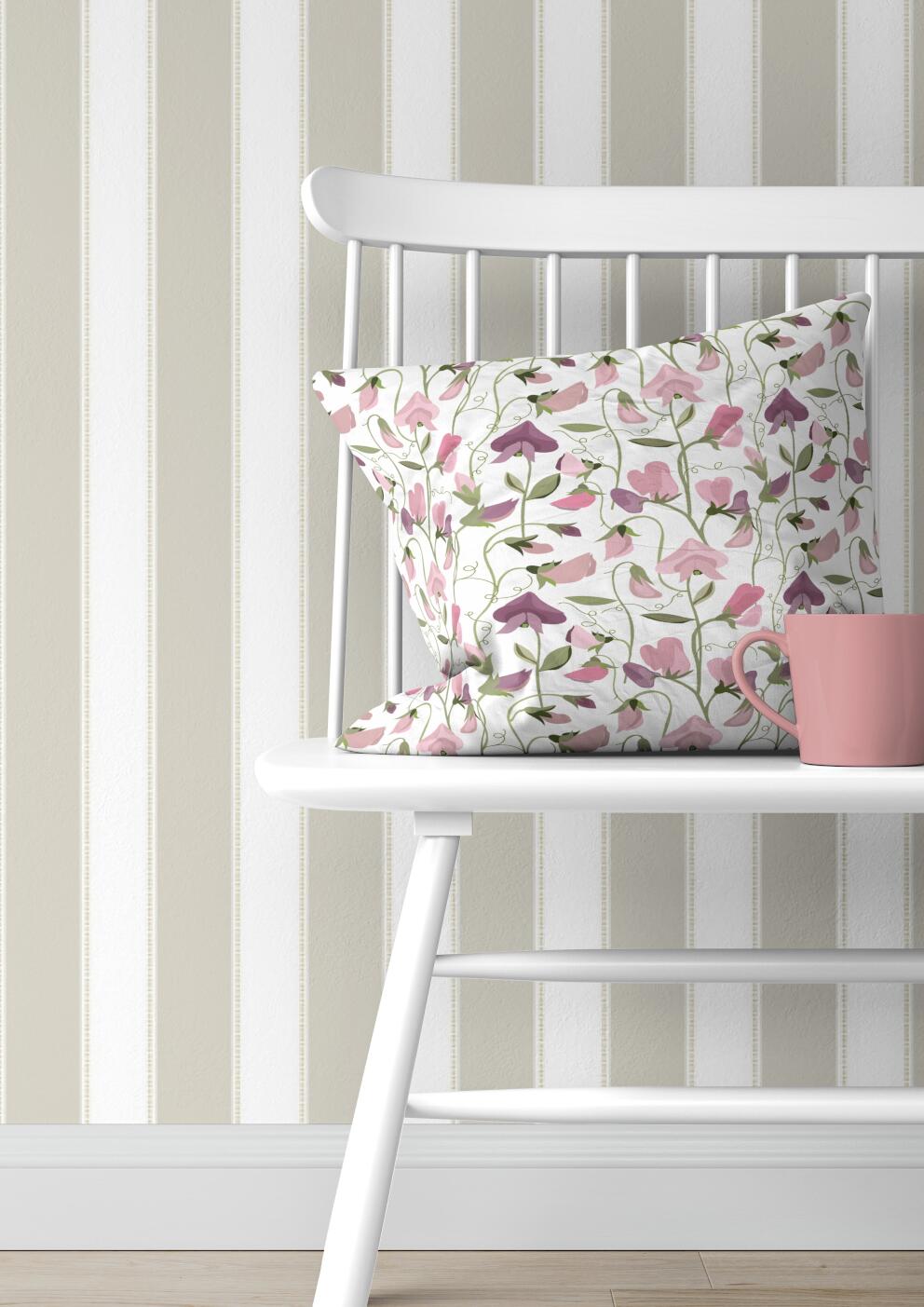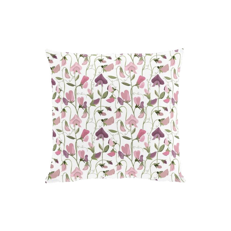 Kuddfodral LUKTÄRT med luktärtor i ljusrosa och lila på offwhite bottenfärg