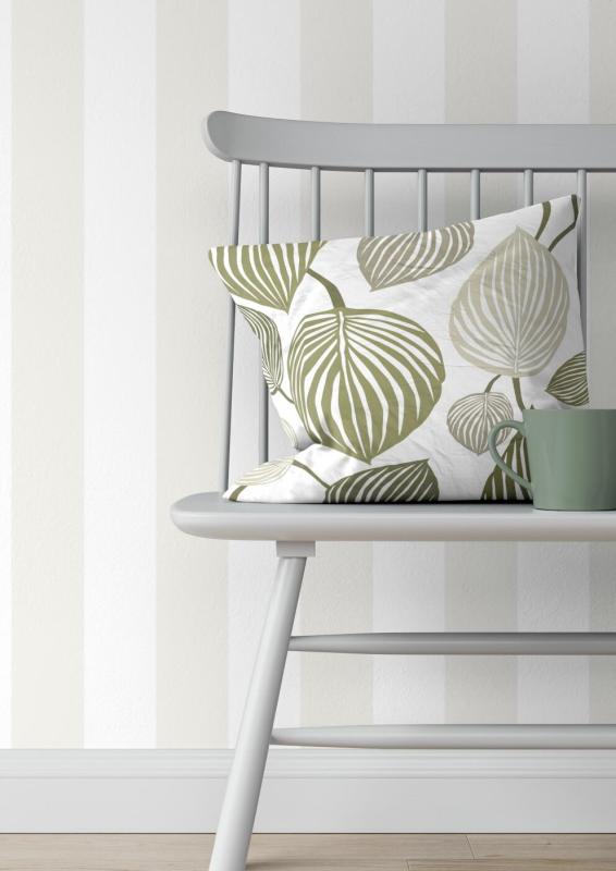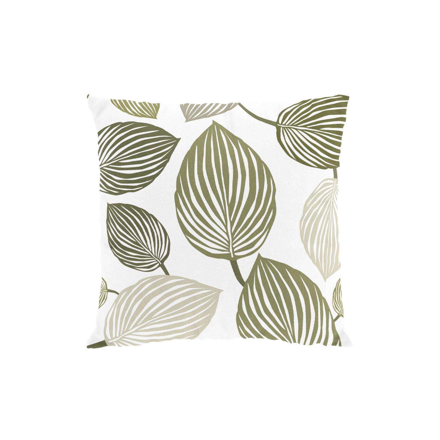 Kuddfodral LYCKANS BLAD, med stora blad i olivgrönt på offwhite bottenfärg