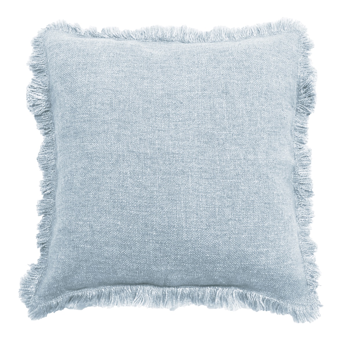 Kuddfodral Madde, enfärgad med lite grövre struktur och frans runt om i ljusblått