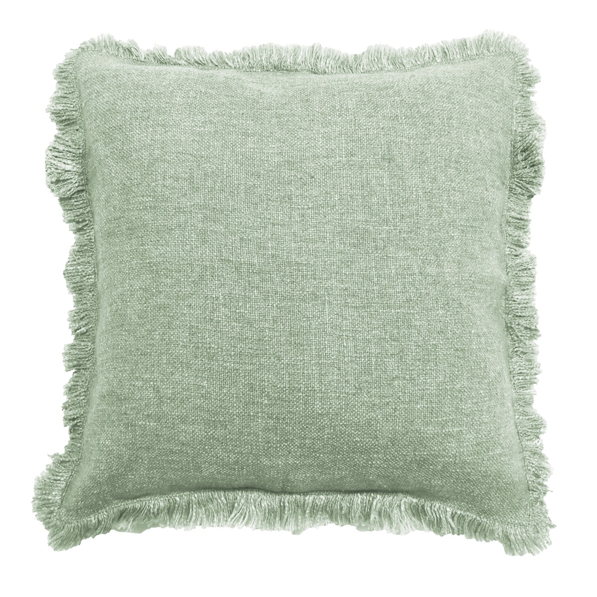 Kuddfodral Madde, enfärgad med lite grövre struktur och frans runt om i ljusgrönt