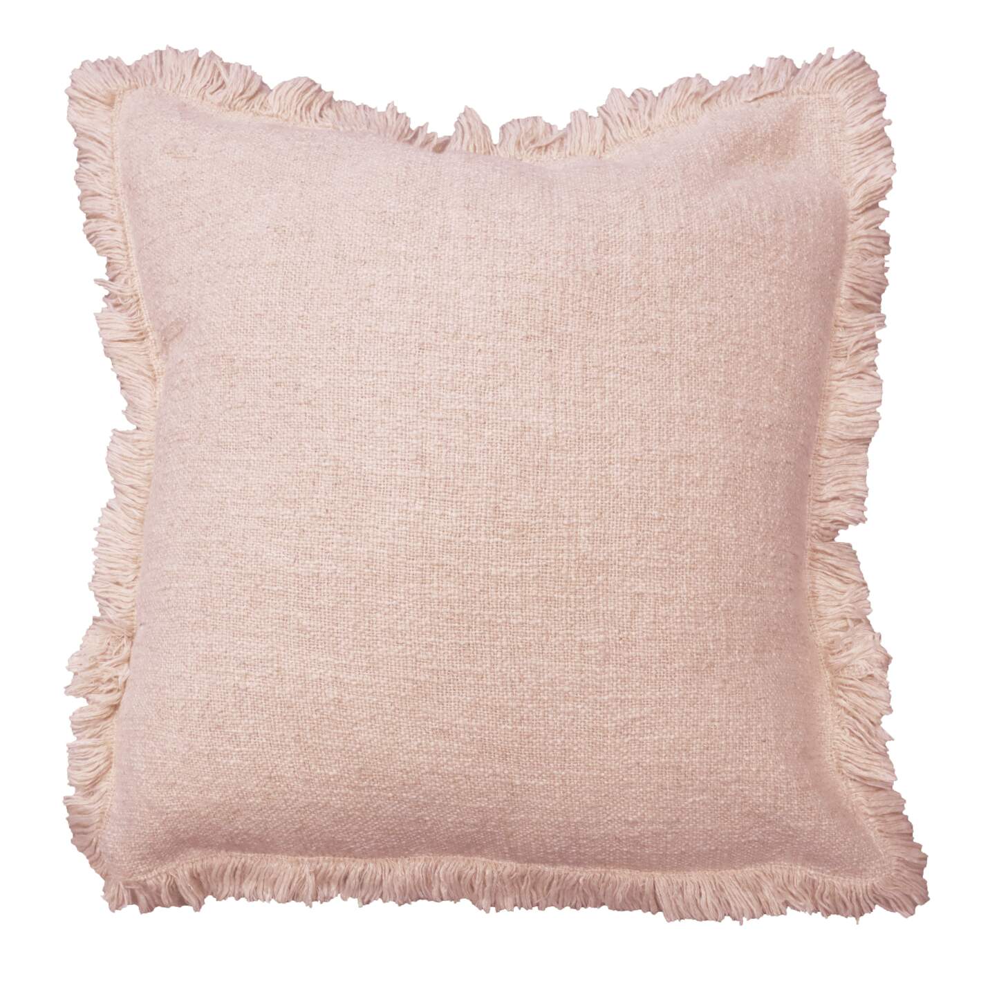 Kuddfodral Madde, enfärgad med lite grövre struktur och frans runt om i ljusrosa