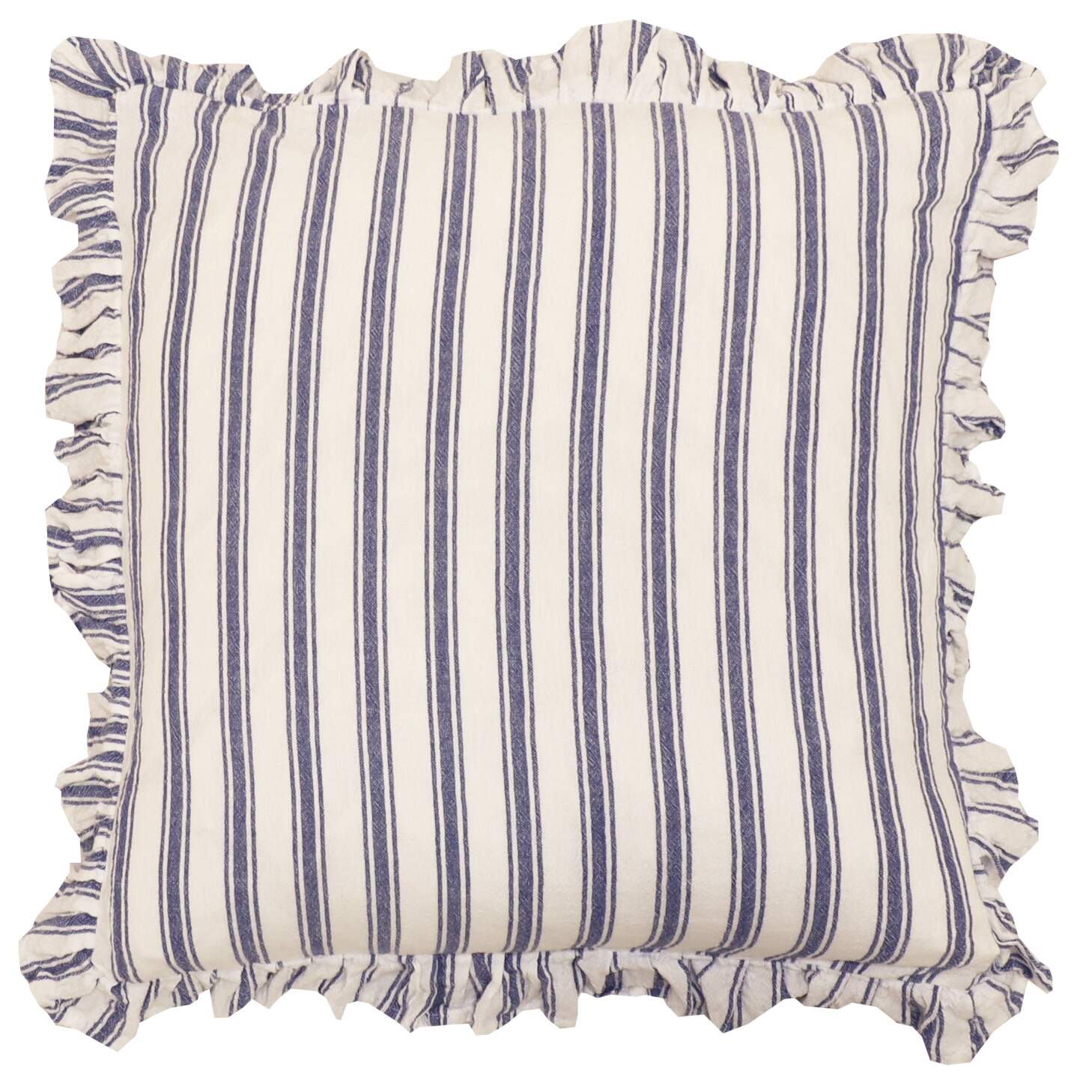 Stl. 45x45 cm plus ca 5cm volang. Kuddfodral MADICKEN randig i enzymtvättad bomull med dekorativ volang runt kanten.