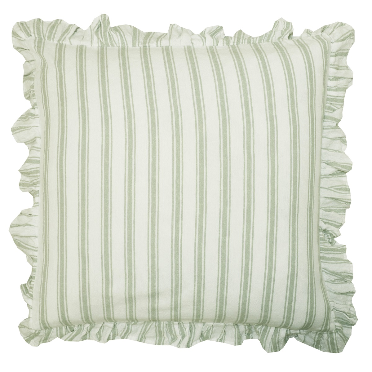 Kuddfodral MADICKEN randig i grönt och offwhite med volang runt kanten