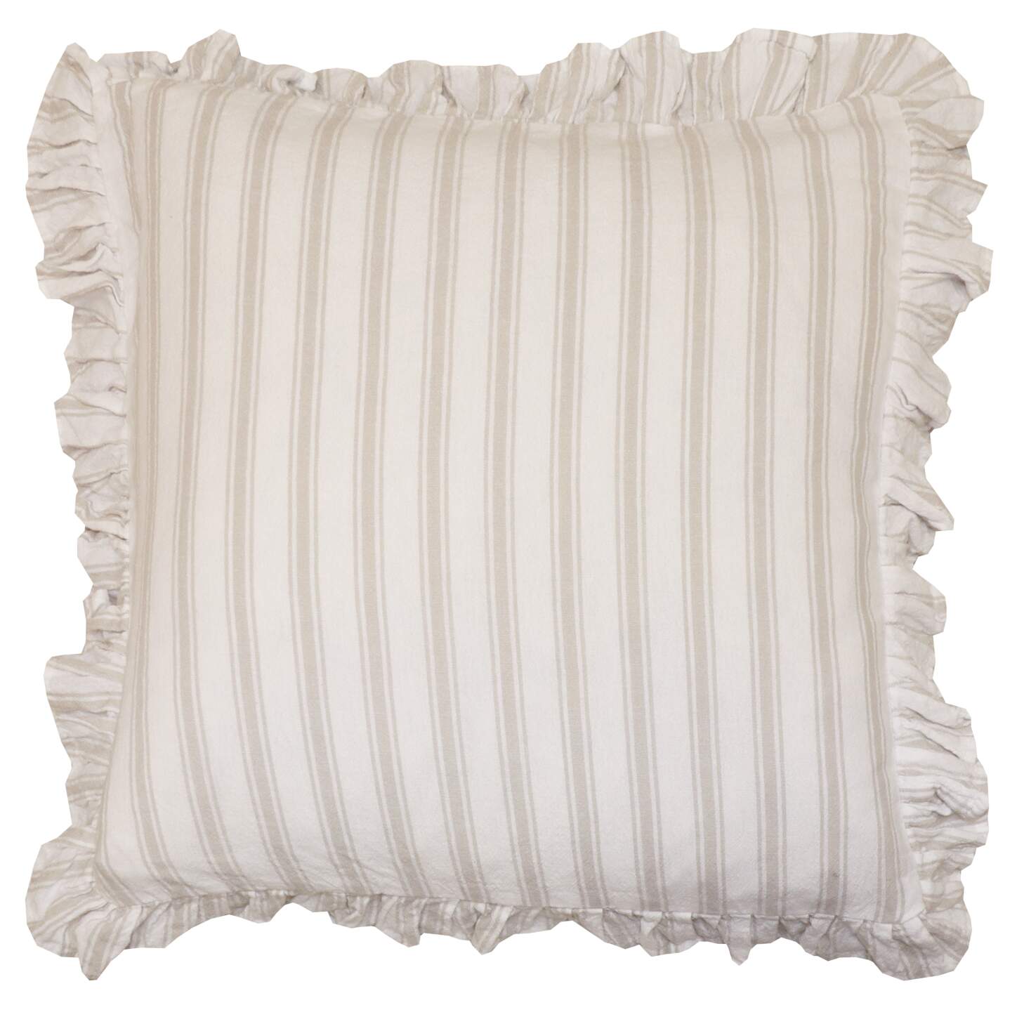 Kuddfodral MADICKEN randig i linnefärg och offwhite med volang runt kanten