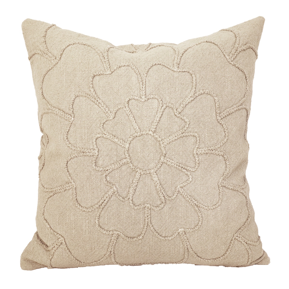 Kuddfodral MATILDA med broderad blomma i sandfärg