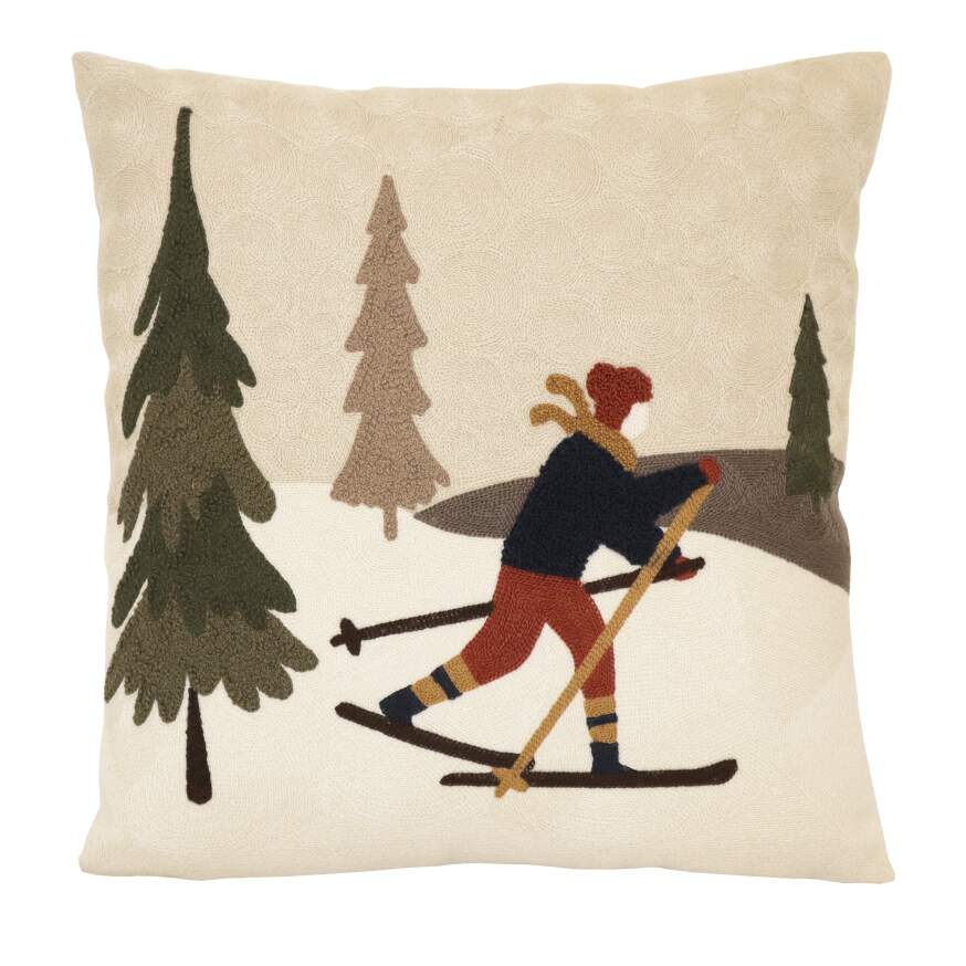 Kuddfodral PÅ TUR, med en broderad skidåkare på tur