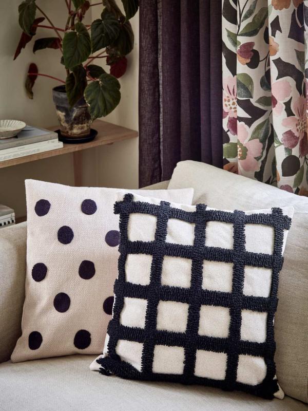 Fyll soffan med mysiga kuddar i matchande färger. Följ länken svarta enfärgade kuddar så hittar du bra förslag på enfärgade kuddar eller följ länken mönstrade svarta kuddar.