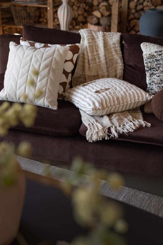 Stl. 47X47 cm. Kuddfodral Senja med dekor sömnad i snyggt sicksack mönster. Ett trevligt inslag i soffan och matchas lätt med andra kuddar.