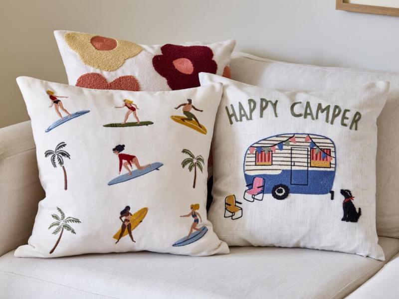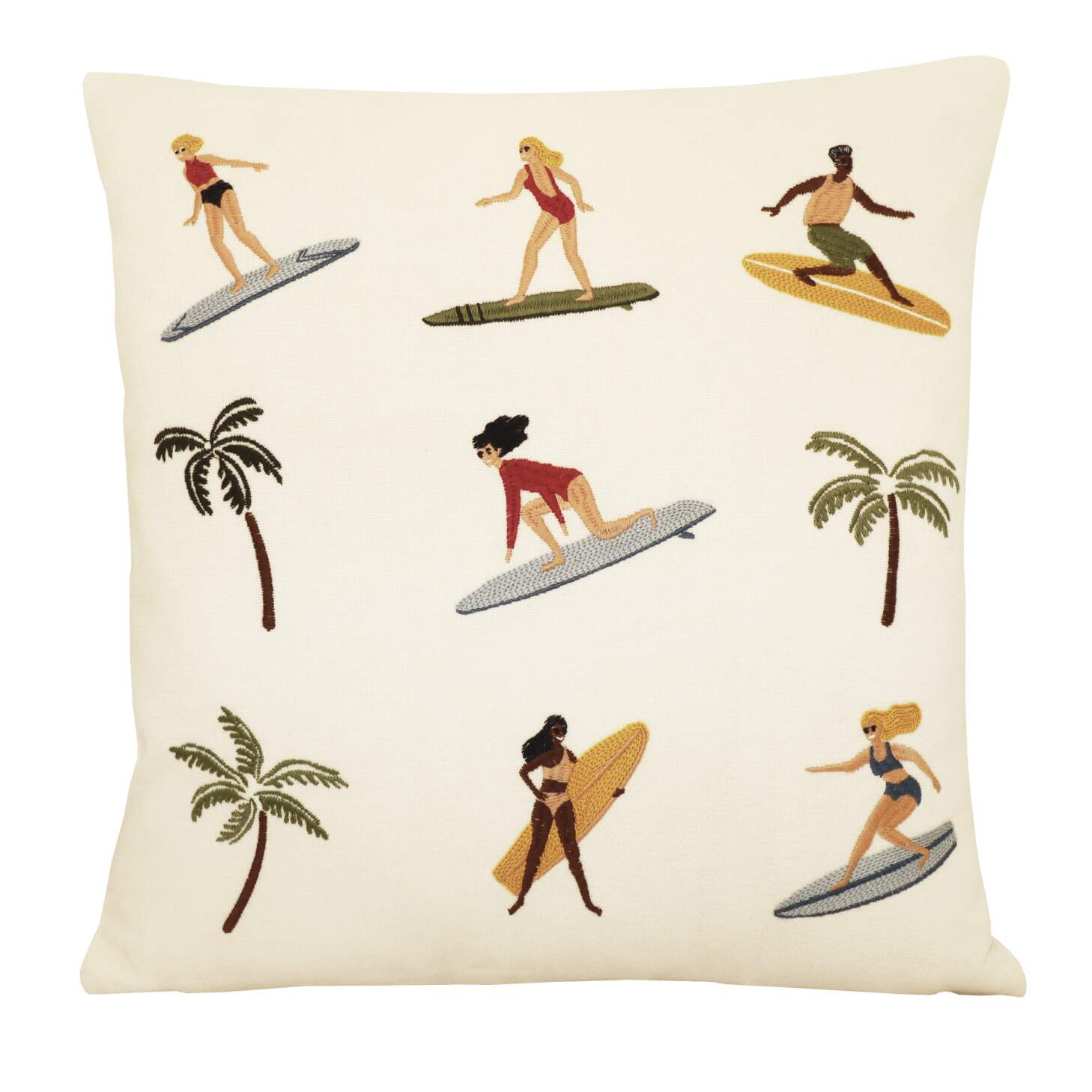 Kuddfodral SURFERS med broderade palmer och surfande människor