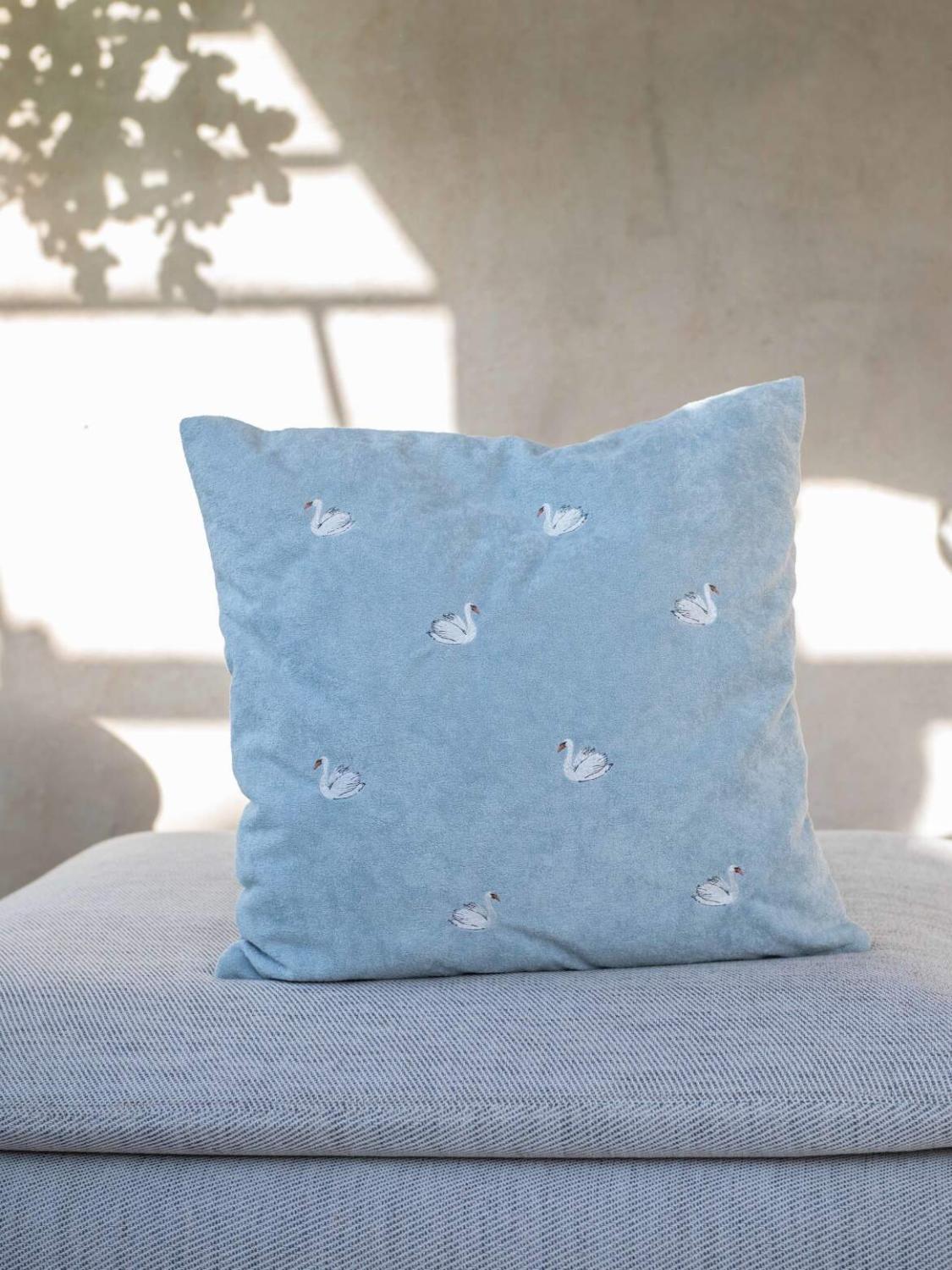Kuddfodral SVAN i ljusblått med vita små svanar