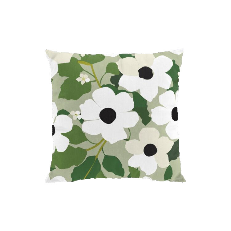 Kuddfodral SVARTÖGA med blomman svartöga i vitt och gröna blad