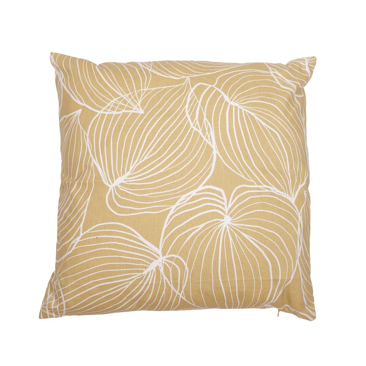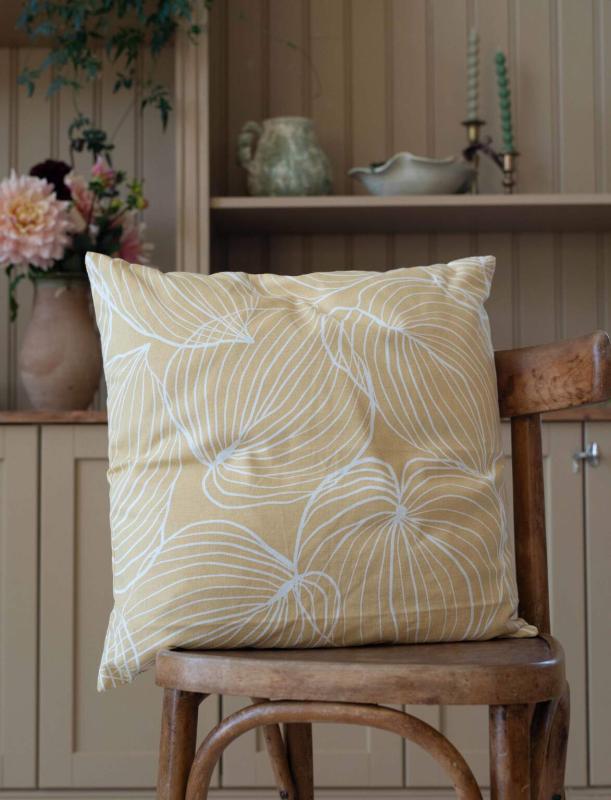 Kuddfodral TILDA med vita ritade blad på gul bottenfärg