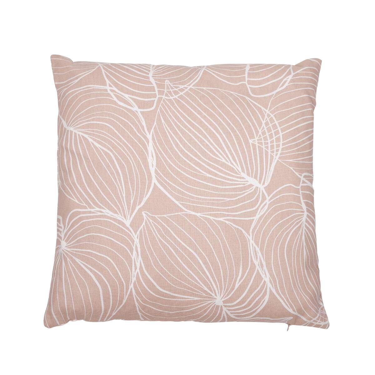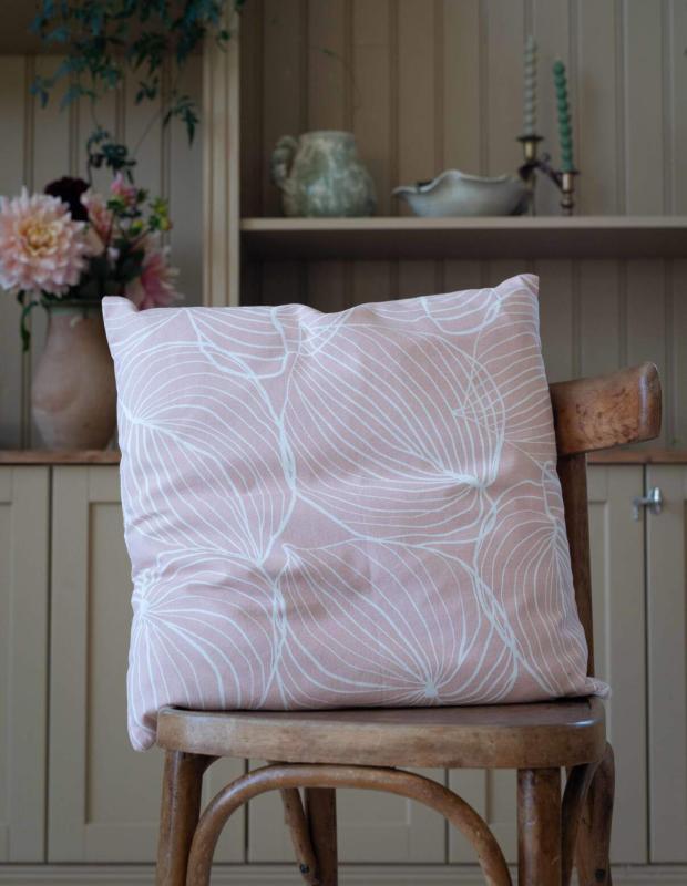 Kuddfodral TILDA med vita ritade blad på rosa bottenfärg