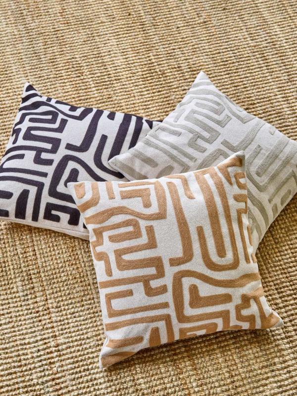 Kuddfodral TIMBER med grafiskt broderat mönster i svart