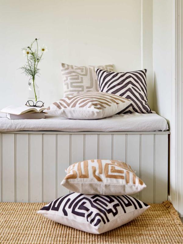 Fyll soffan med massor av kuddar. Blanda olika mönster och material med enfärgade kuddfodral och skapa din egen stil.