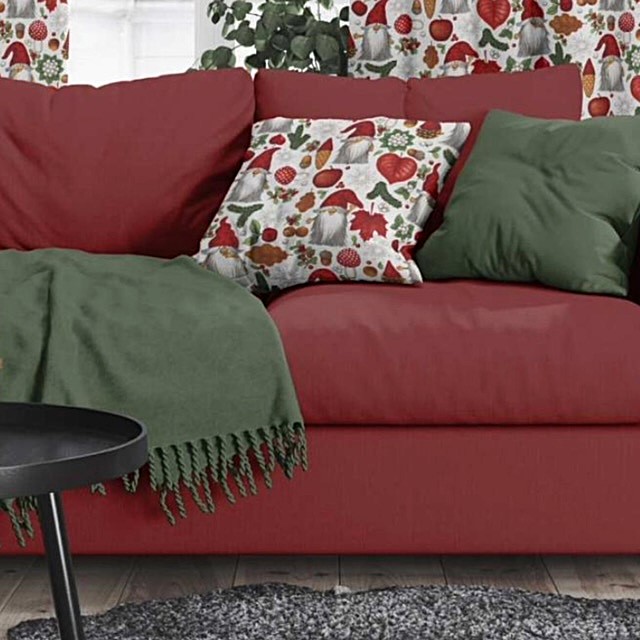 Kuddfodral Tomteskogen med skojiga tomtar i röda luvor