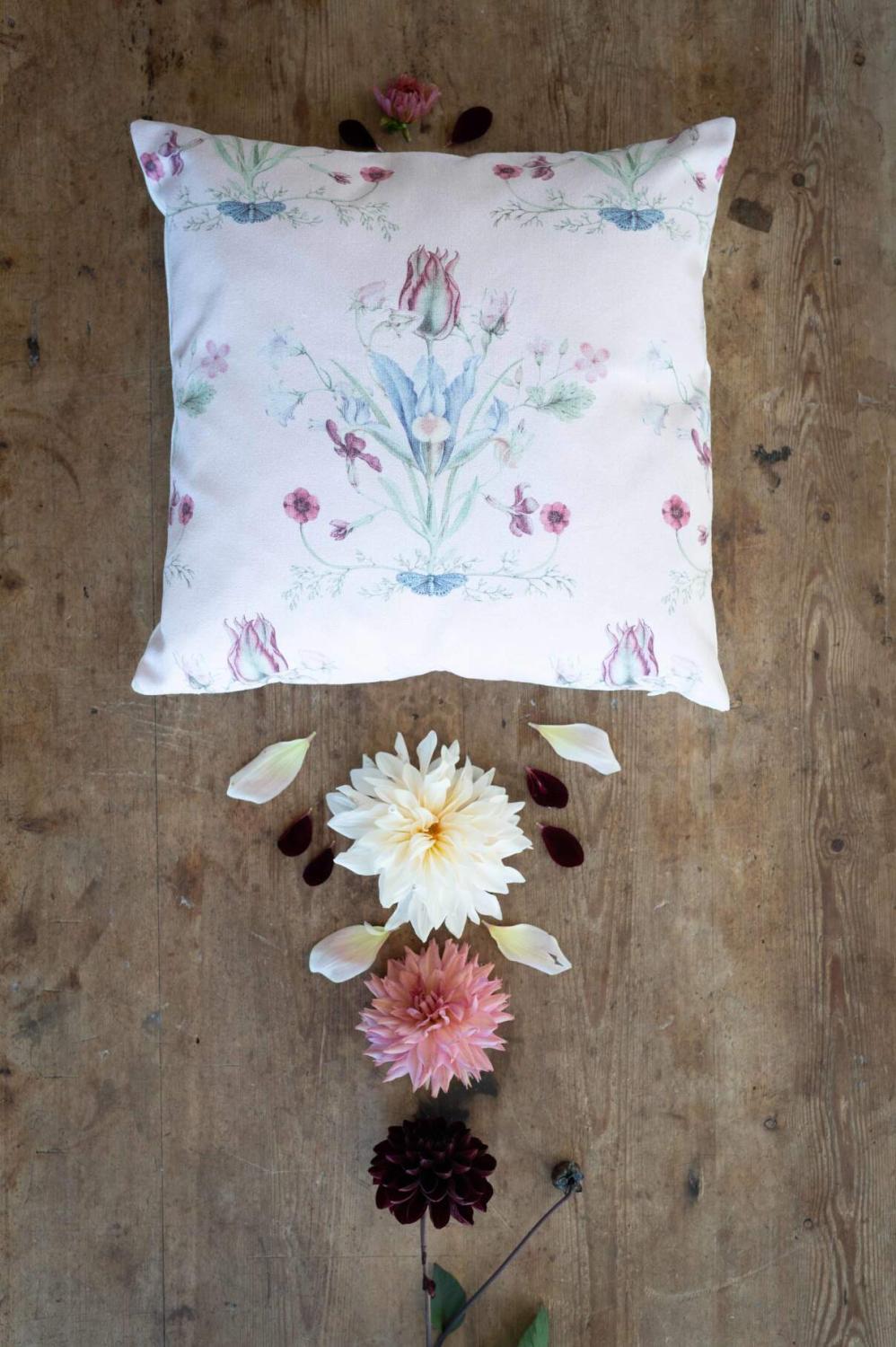 Kuddfodral VENDELA med blommor i bukettliknande mönster på rosa bottenfärg