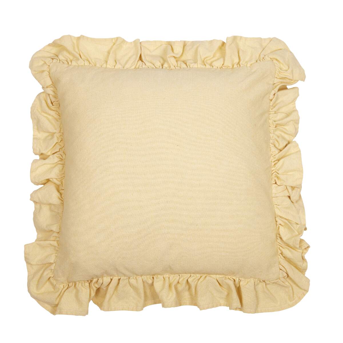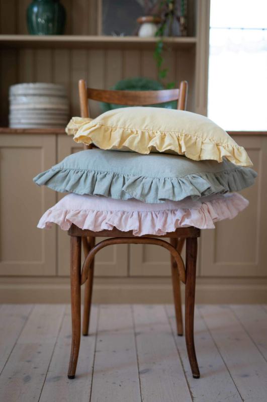 Kuddfodral VIDE, enfärgad i återvunnen textil i gult med volang runt kanten