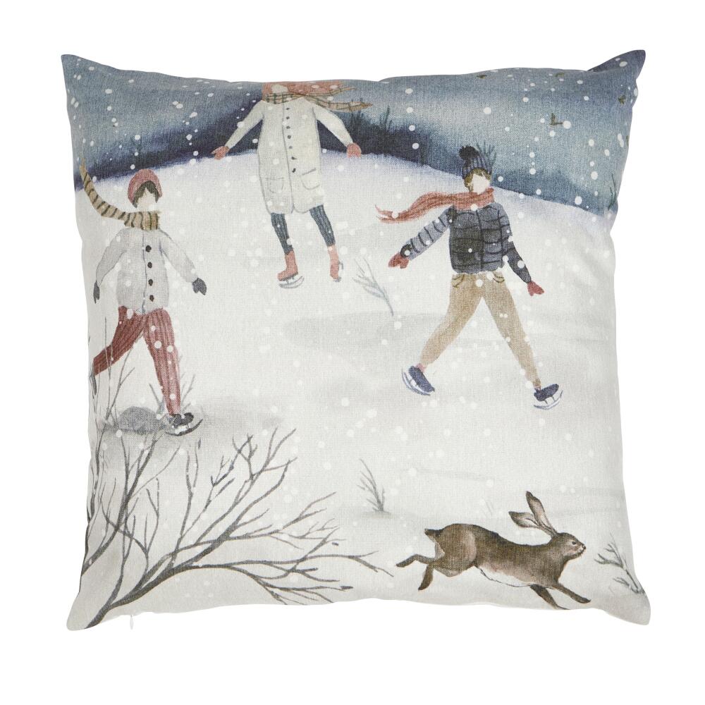 Kuddfodral VINTERDAG med barn som åker skridskor och en hare