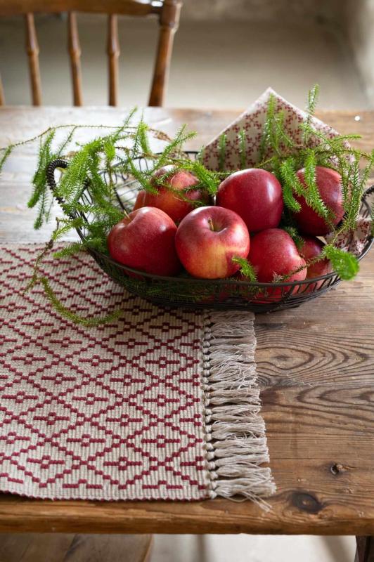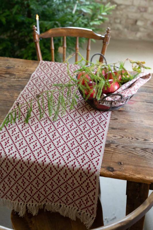 Stl. 40X140 cm. Bordslöpare Benji, vävd lite grövre löpare med inkainspirerat rutmönster och frans i kortsidorna.