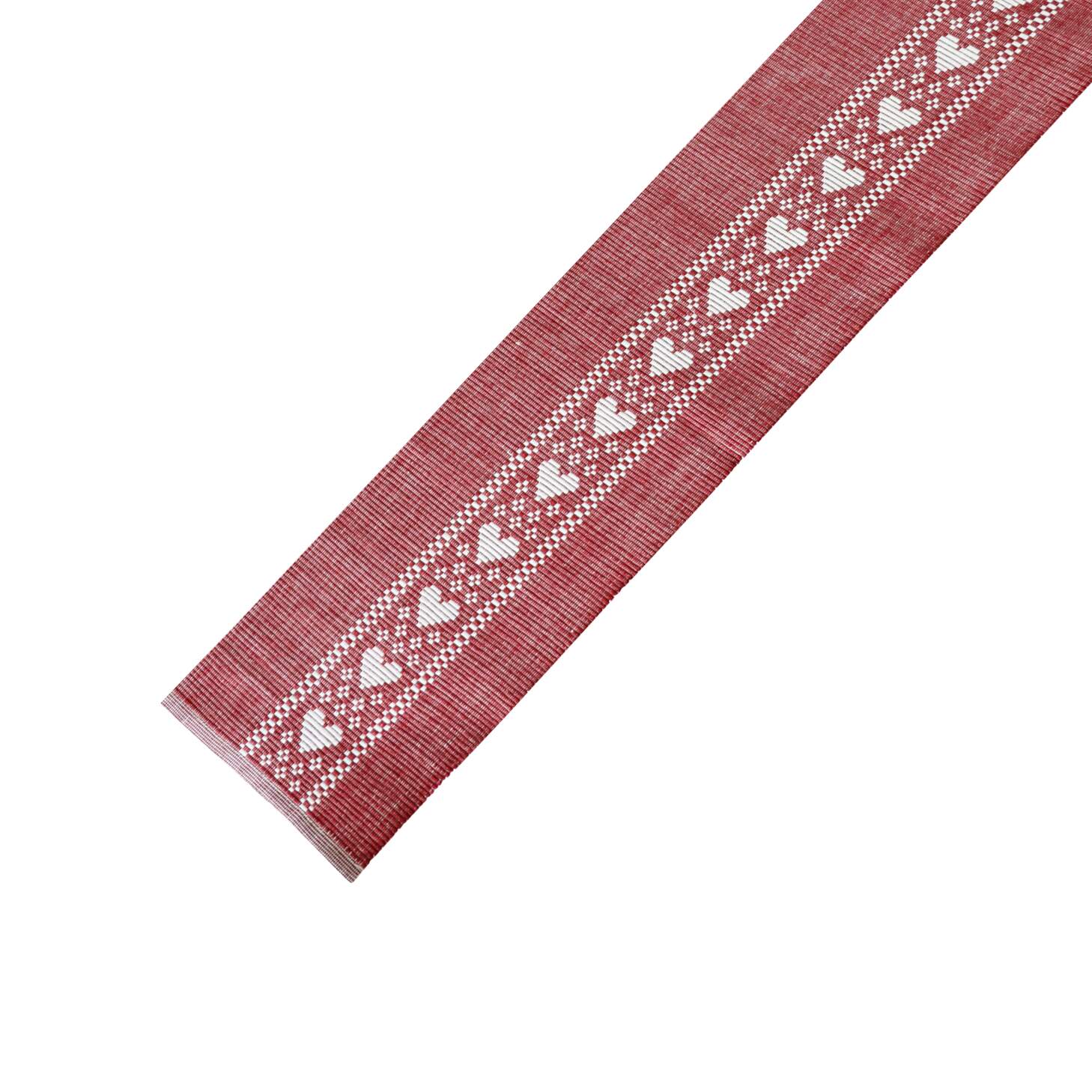 Löpare, fönsterremsa KAJSA röd jaquardvävd duk med vita hjärtan i mitten