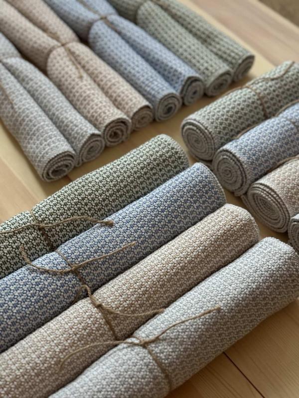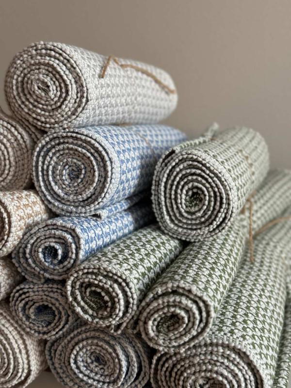 Serien Sten som består av två olika löpare är en hyllning till svensk tradition och en modern touch. Dessa bordslöpare är skapade av 99% återvunnen textil, vilket inte bara ger en känsla av hemtrevnad utan också stödjer vårt gemensamma ansvar för miljön.