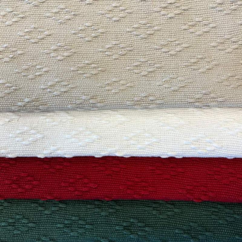 Löpare FREDRIKA, enfärgad bordslöpare med vävt mönster och frans i vitt