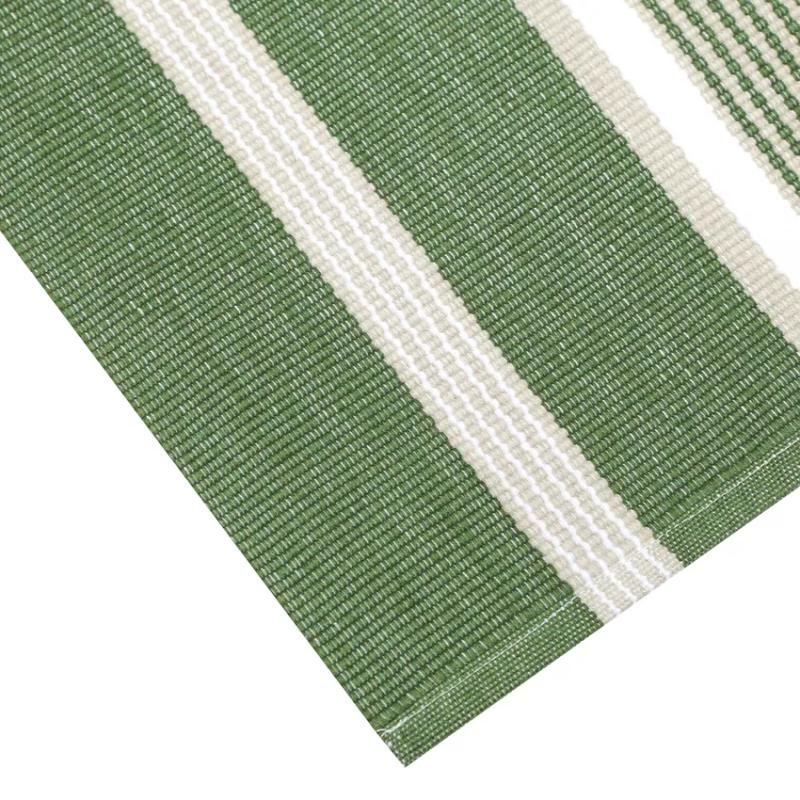 Löpare GRETA randig i grönt, offwhite och linnefärg, stl.45x140cm