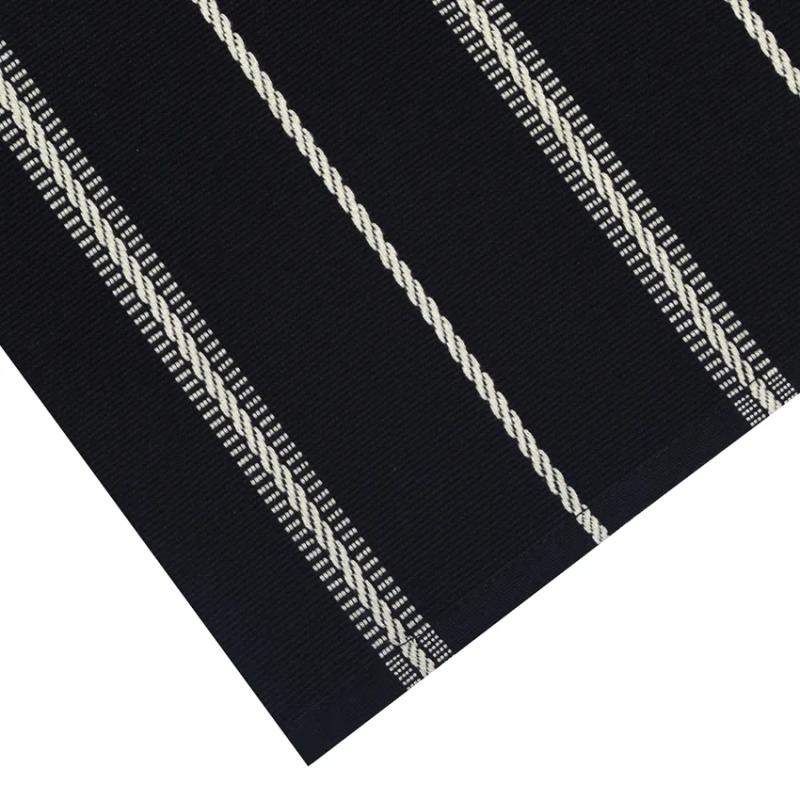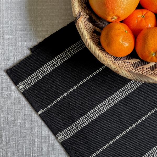 Löpare HERMAN i svart med tvinnade linnefärgade ränder, stl 45x140cm