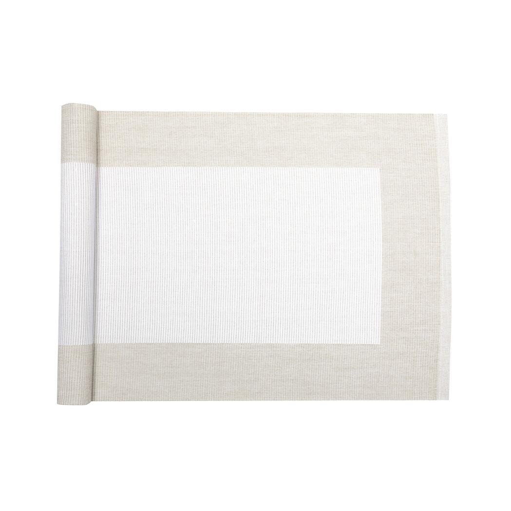 Löpare POPPY i linnefärg och vitt med mörkare linnefärgad ram runt kanterna