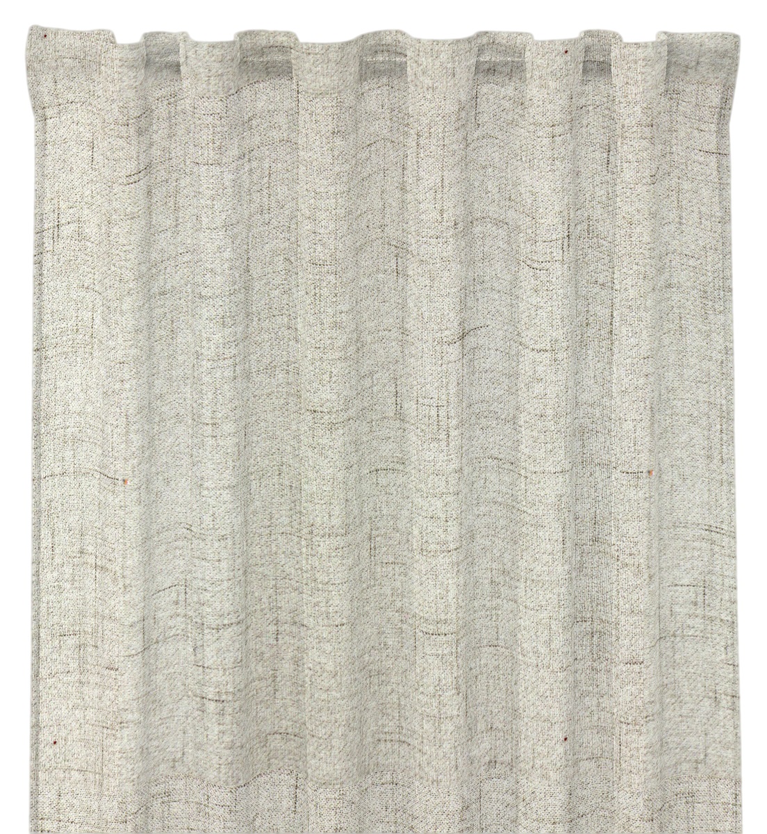 Stl. 1st 140x300cm Gardinlängd, extra lång, melerad med mörkläggande effekt. Black Out. Multiband upptill, overlock nedtill