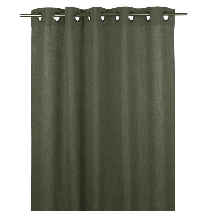 Öljettgardin BROOKLYN, enfärgad i mörkgrönt i tyg med struktur