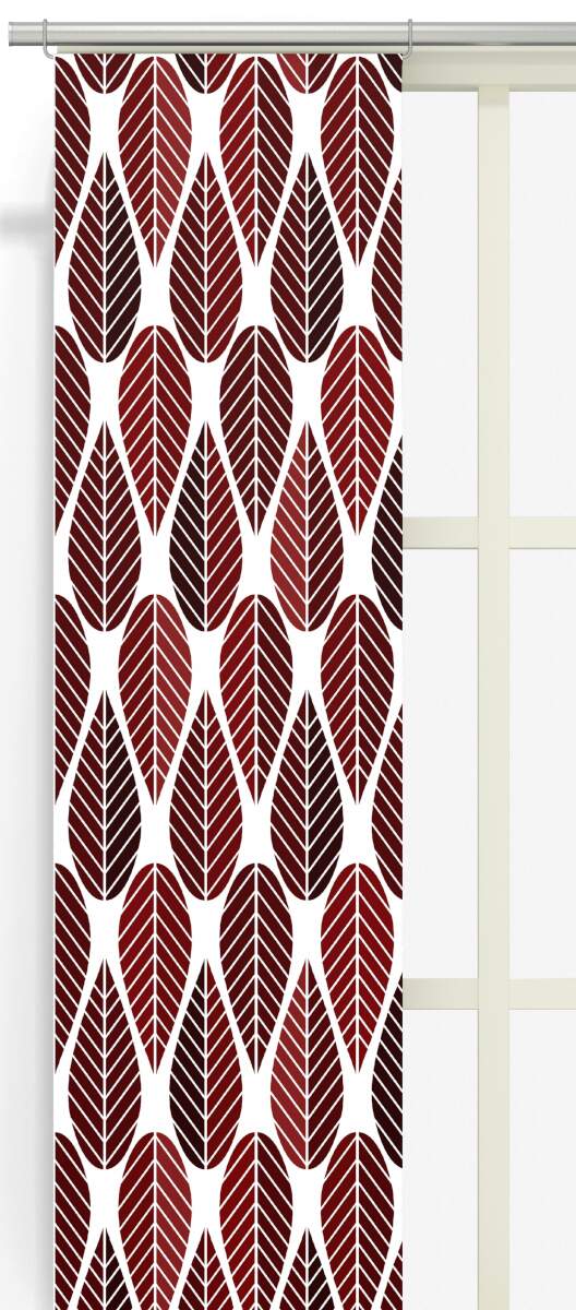 Panelgardin Blader, grafiskt retro mönster i vinrött, rost och brunt