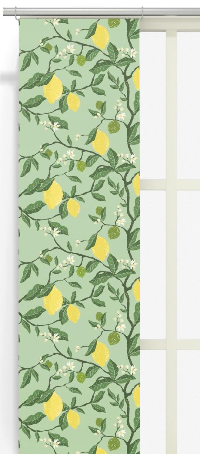 Panelgardin CITRONTRÄD med gula citron på gröna kvistar, grön bottenfärg