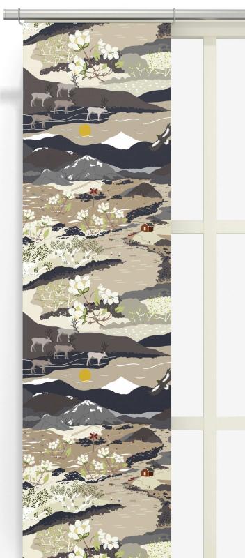 Panelgardin Fjällvandring, renar i fjällen, Stl: 2st 43x260cm, beige, grå