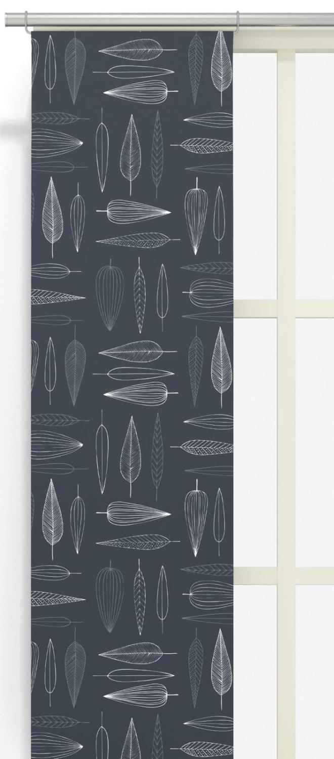 Panelgardin FROSTBLAD med stiliserade blad på blå bottenfärg