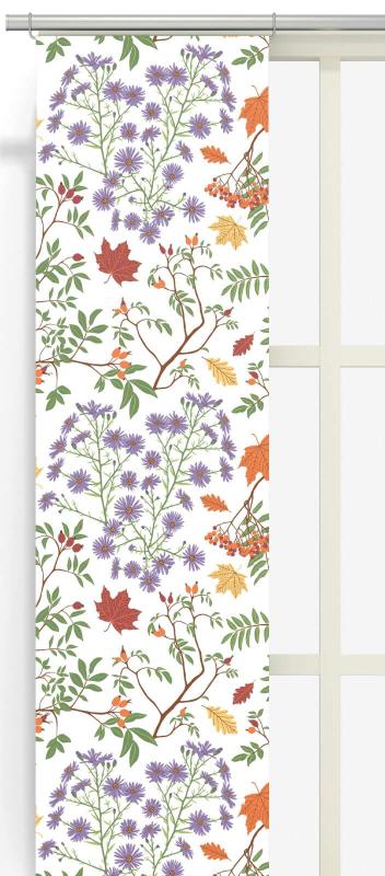 Panelgardin HÖSTASTER med blålila höstaster och orange lönnlöv och nypon