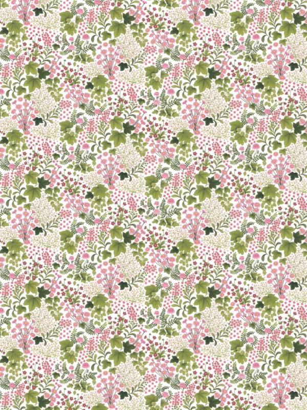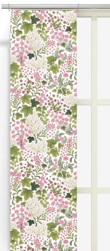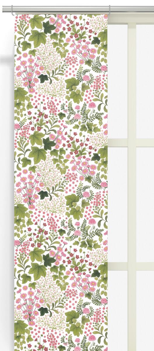 Panelgardin MORMORS TÄPPA med små rosa blommor och gröna blad