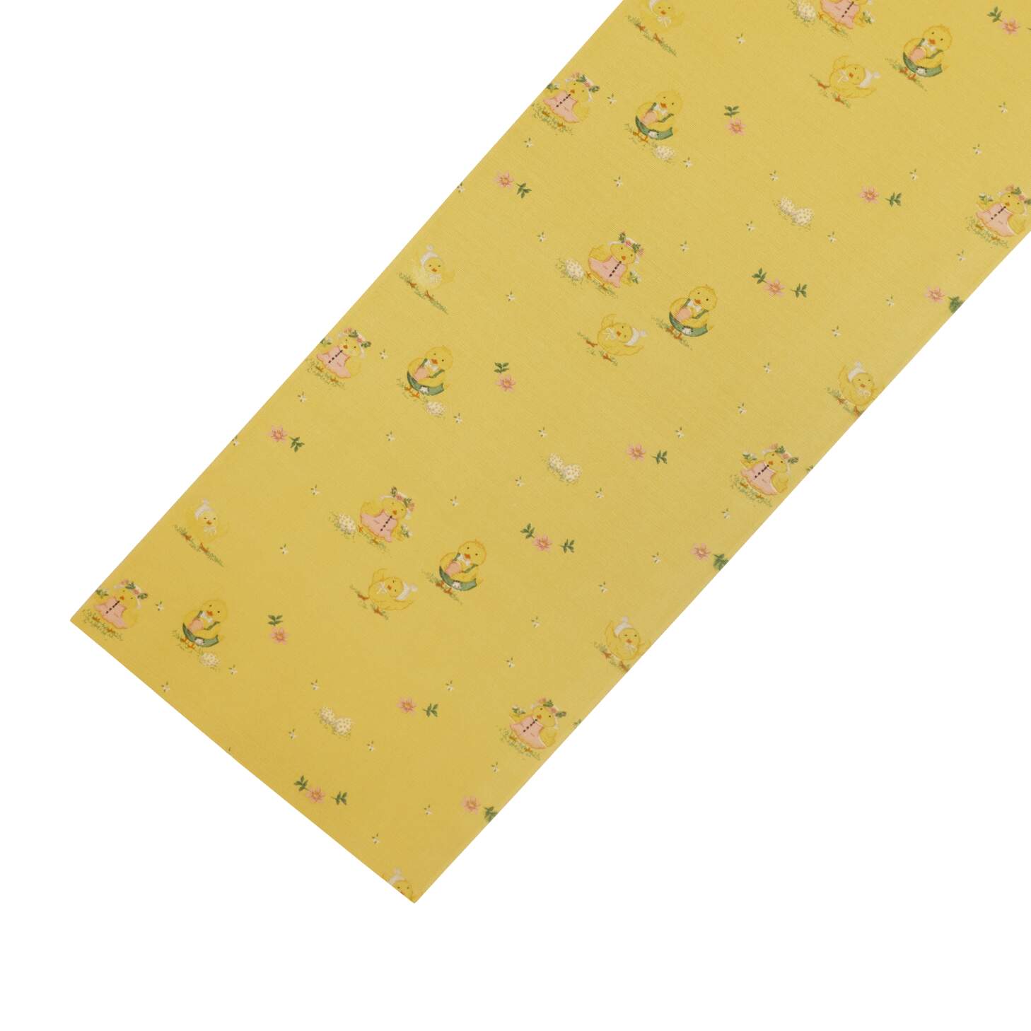 Påsklöpare HÖNÖ med tryckta påskägg, påskkycklingar och små blommor på gul bottenfärg