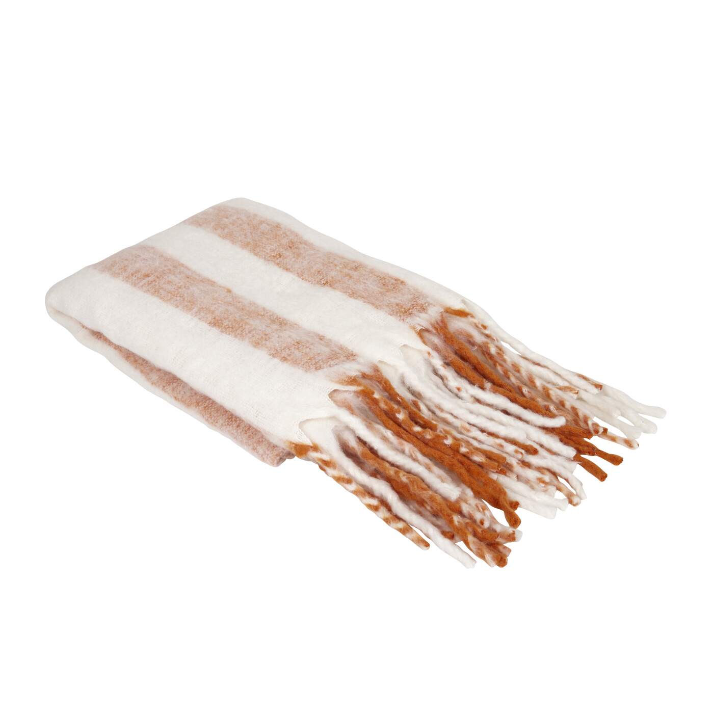 Pläd MIA bredrandig i offwhite och apelsinfärg med långa fransar