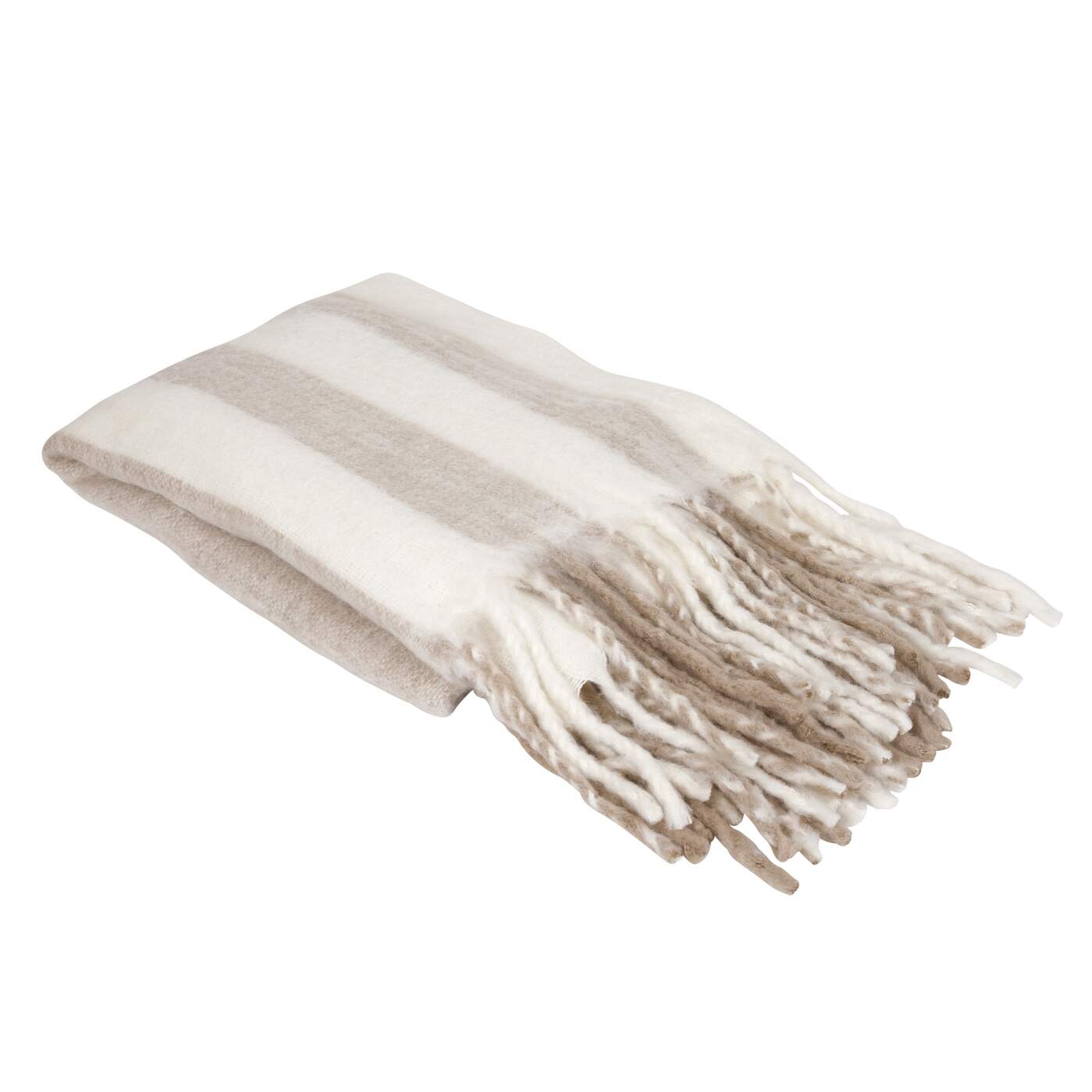 Pläd MIA bredrandig i offwhite och sandfärg med långa fransar