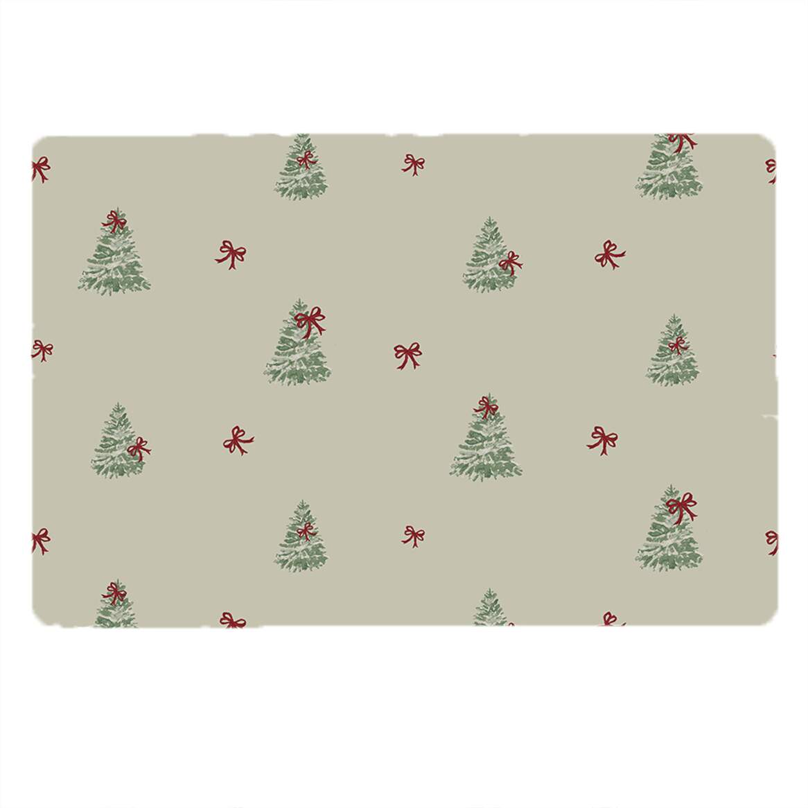 Plasttablett CHRISTMAS TREE med gröna granar och röda rosetter på linnefärgad botten