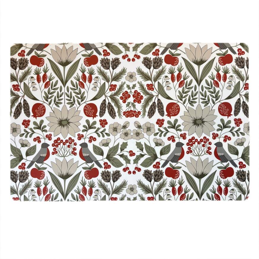 Plasttablett HEDEMORA med blommor, kottar, grankvistar och bär på vit botten