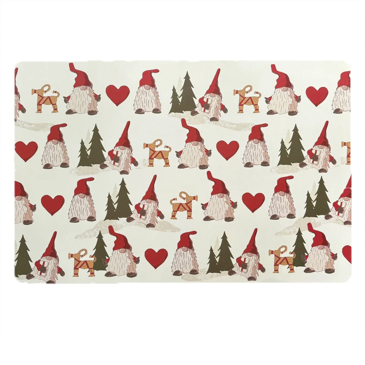 Stl. 28x43 cm, Plasttablett, tallriksunderlägg NOEL med julmotiv av tomtar, hjärtan, granar och halmbockar. Enkel att torka av med fuktig trasa.